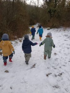 En décembre, le temps de l’Avent a été ponctué de petites surprises dans la nature. Les enfants ont créé de petits cadeaux de Noël et vécu un moment magique en découvrant des trésors suspendus, porteurs d’intentions laissées par les lutins des bois. Leur mission : les distribuer aux animaux, dans un esprit de partage et d’émerveillement collectif.
